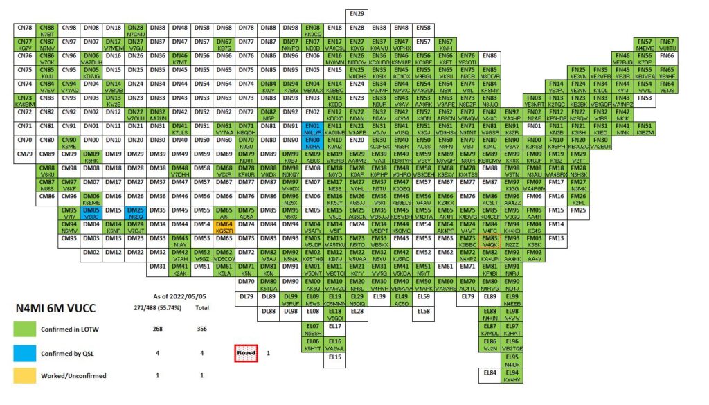 I am active on 6M during the Spring and Summer Es season seeking new DX and grids.